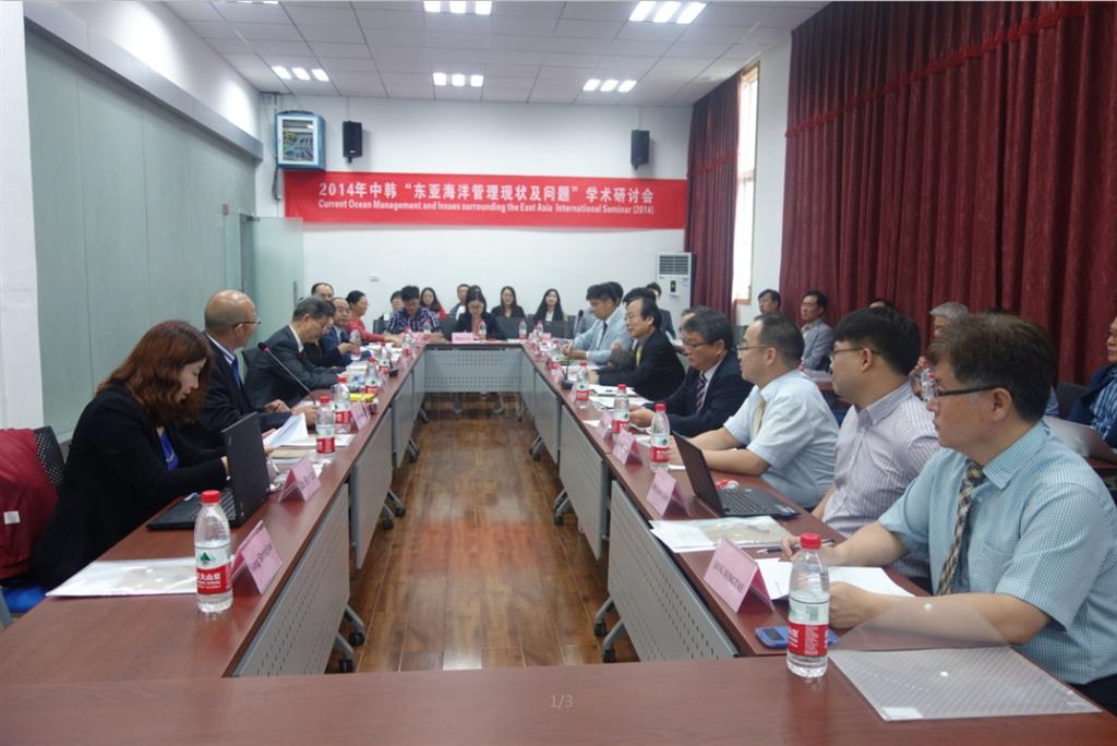 2014年10月16日上午9时至下午6时,由中国边界与海洋研究院、韩国水道测量学会共同主办的“2014中韩‘东亚海洋管理现状及问题’学术研讨会”在我院顺利召开。我院常务副院长胡焰初精彩主持了该研讨会,王佳佳老师担任韩语同传。我院院长胡德坤教授对来自韩国水道测量学会的19名专家学者致以了热烈的欢迎,并对中国海洋研究的发展进行了简单介绍。