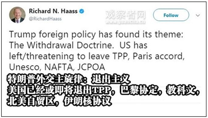 美国此次突然宣布退出联合国人权理事会,其实在引发一片哗然的同时也可以称得上是“意料之中”,细数特朗普入住白宫以来的各种决定就不难发现,“退出主义”似乎正成为特朗普政府外交政策的主旋律。此前,美国外交领域较权威的智库“外交关系委员会”(Council on Foreign Relations)主席理查德就在个人推特上将特朗普的这些行径概括为“退出主义”(Withdrawal Doctrine)。在“退出主义”影响下,特朗普政府推出联合国人权理事会的做法,会产生以下两方面的影响。